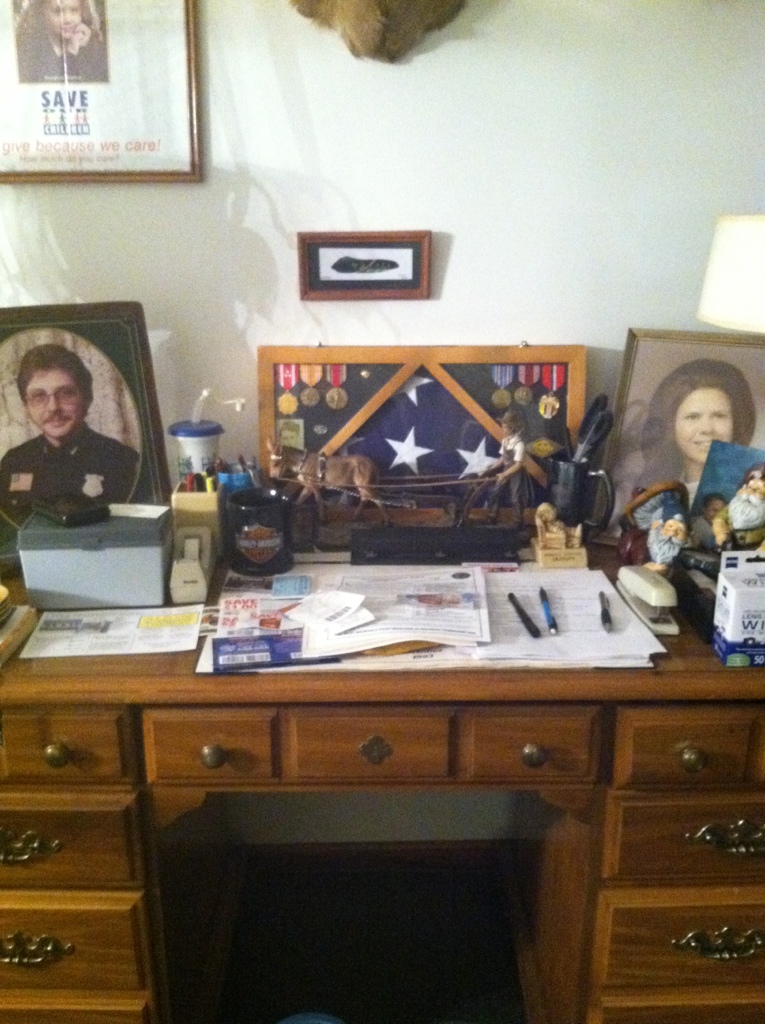 I walked towards the kitchen tonight & happened to pause to look at Grandpa’s desk.